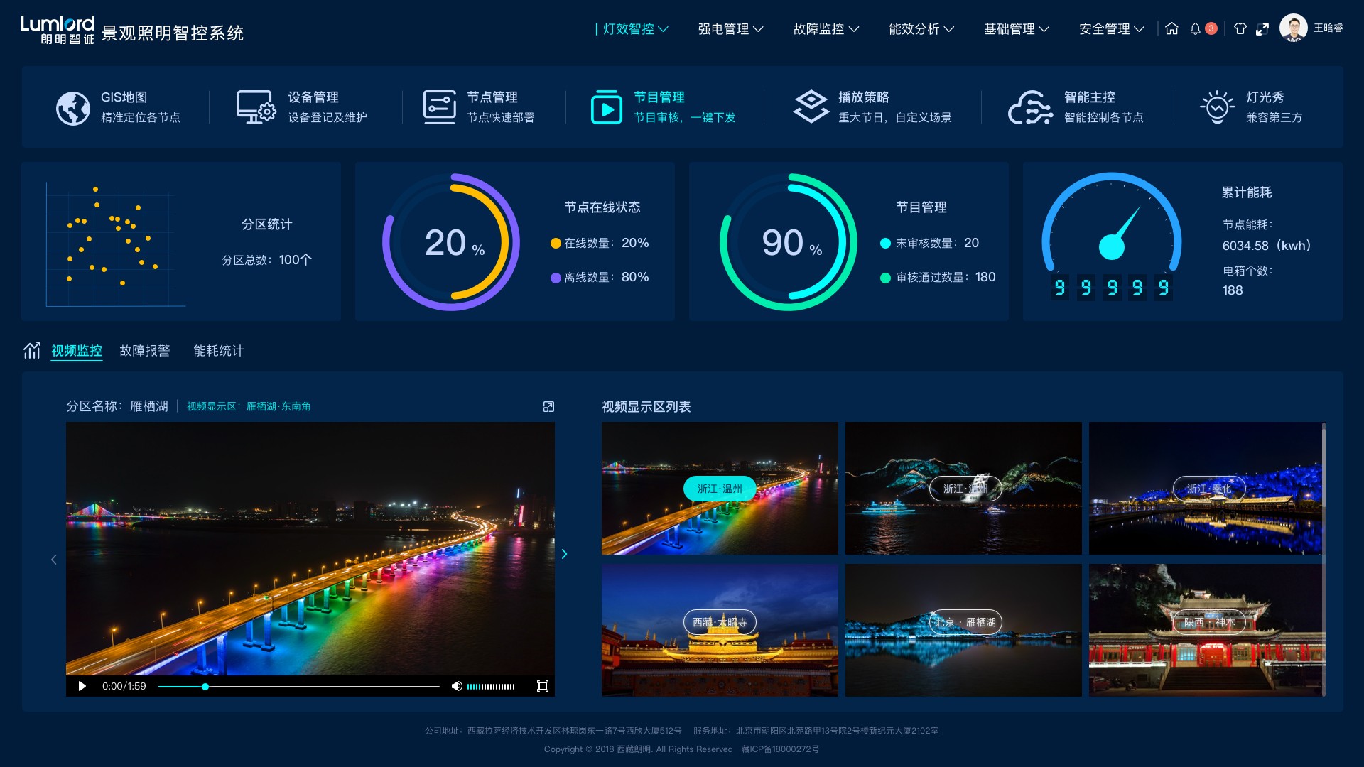 面向樓宇照明、景觀照明場景,實(shí)現(xiàn)大規(guī)模燈光效果控制、燈光強(qiáng)電管理、燈光節(jié)目管理,及燈光運(yùn)維管理。